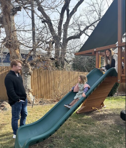 We live in a quiet suburb northwest of Denver, Colorado. We have a great mix of neighbors beginning their families, established families, and couples that are grandparents. Our two-story home is in a quiet cul-de-sac conveniently located 5 minutes from a major highway. From there you can get to the airport in less than an hour, downtown Denver in less than 30 minutes, and an hour to the beginning of Colorado's world-famous ski resorts. We have 4 bedrooms, a finished basement, and a great backyard with a large play structure that Stella, our nieces, and friends' children love to spend hours playing on. We enjoy sitting by the fire on our back deck in the Spring, Summer, and Fall, and are lucky to even get a few sunny days in the Winter. The nursery is ready and waiting to welcome our next child.